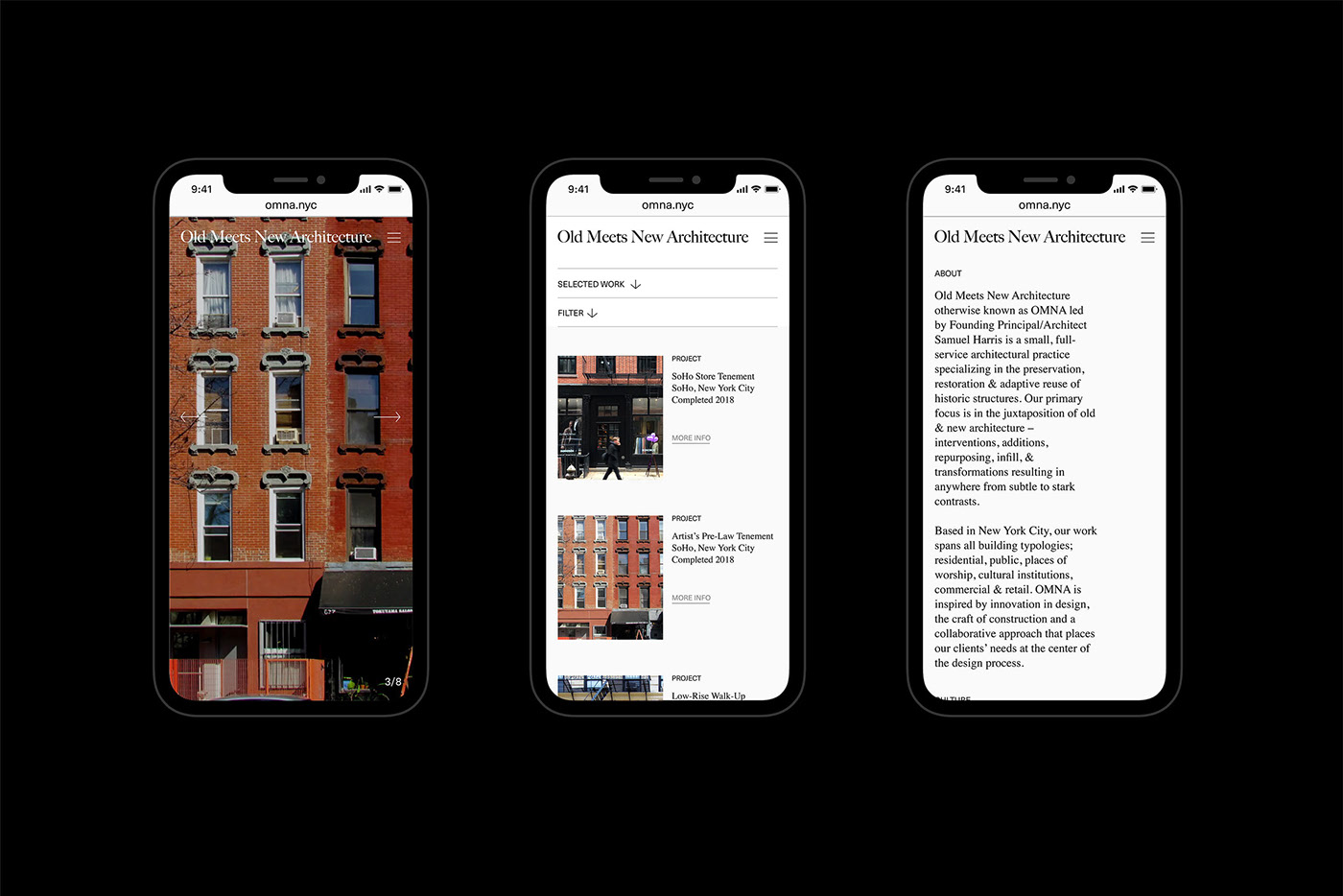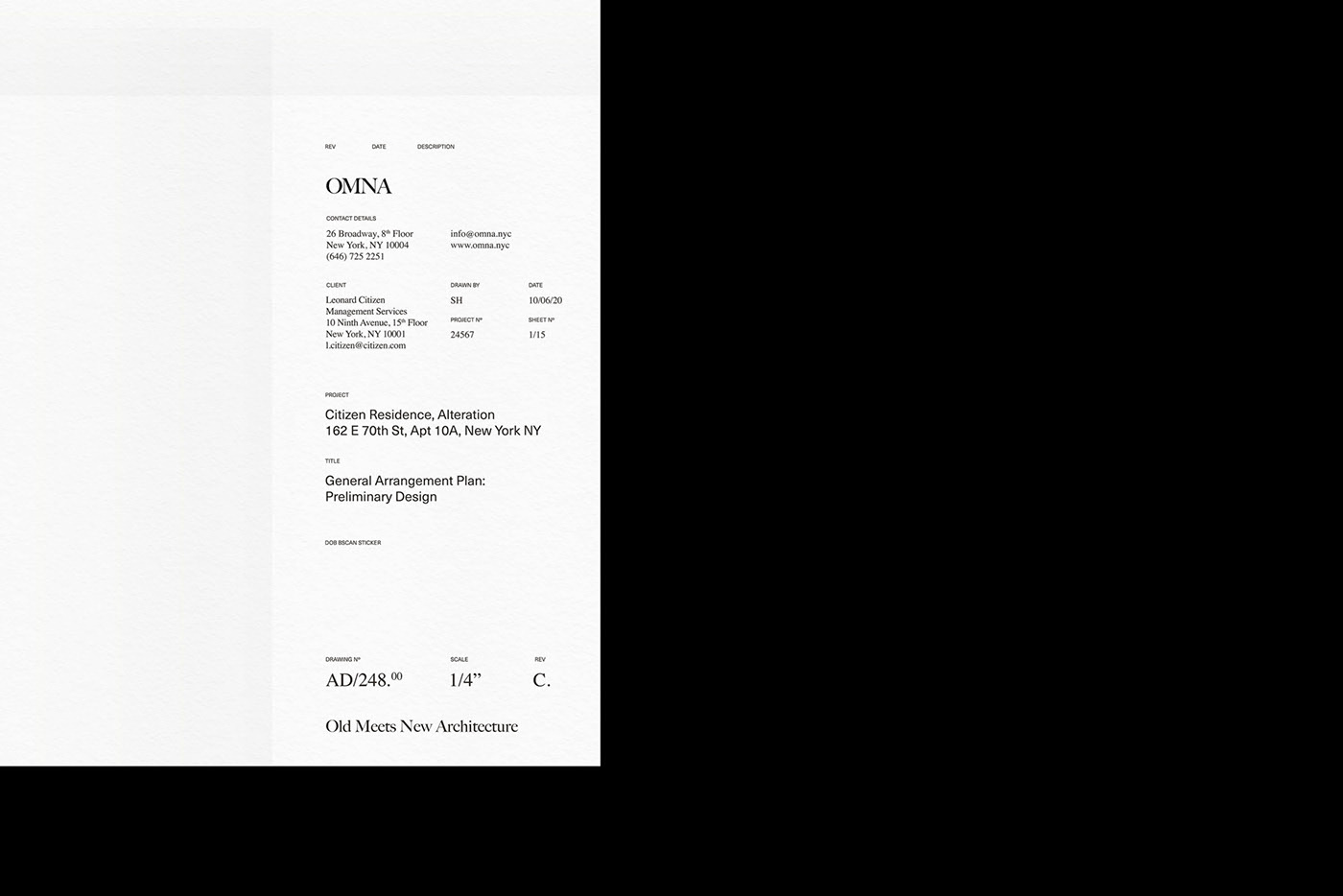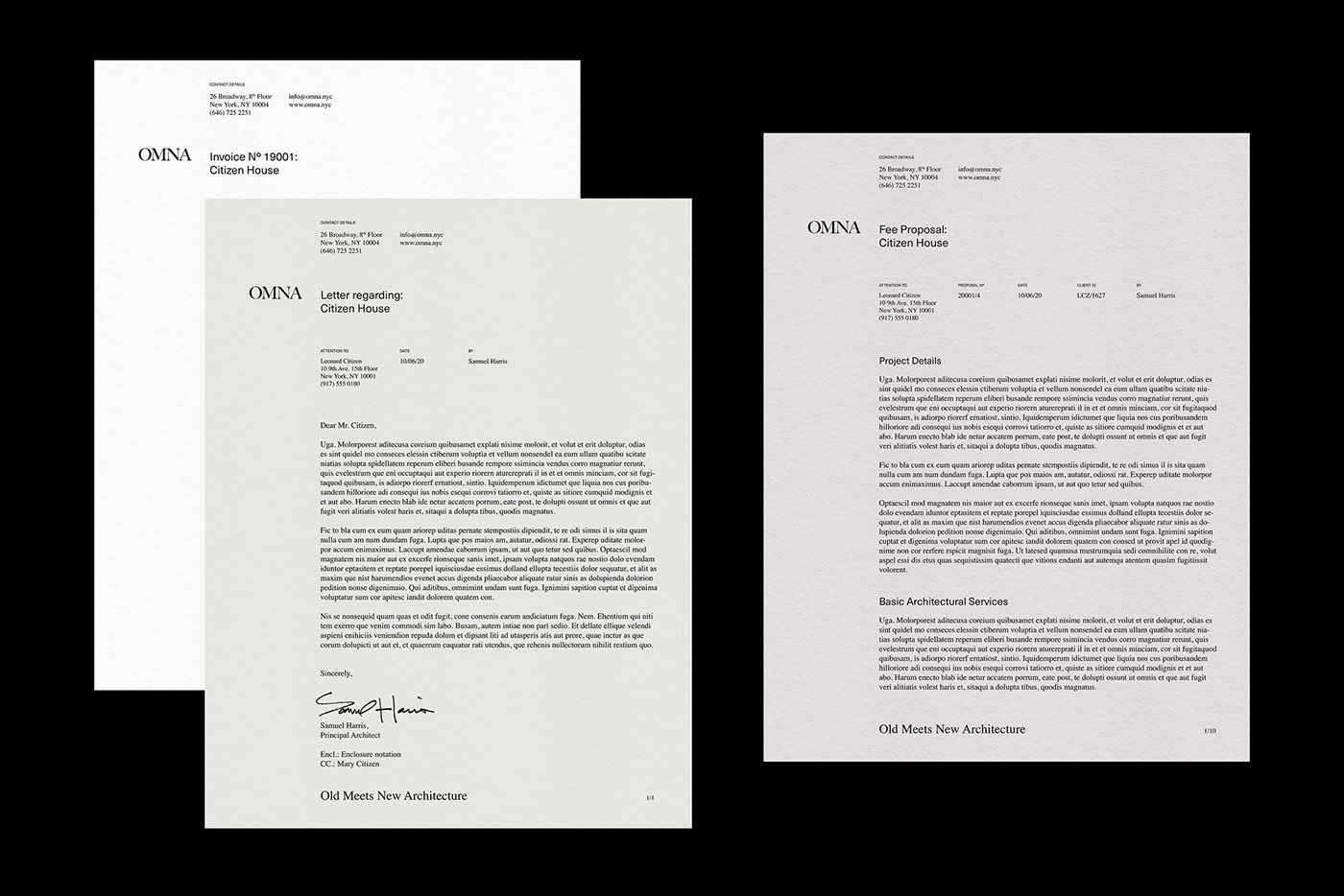The juxtaposition of History x Modernity along with the contrast of new materials in old contexts found in New York City marks the core concept of this architectural practice. To represent such dichotomy, this identity called for a minimal, legible and timeless look, with a subtle combination of classic typefaces as a nod towards the main concept.